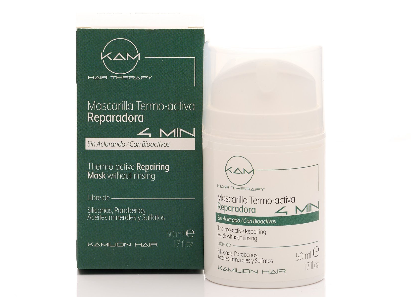 KAM 4 MIN une la eficacia de un producto con resultados inmediatos en el cabello y una composición basada en Bioactivos que reparan la fibra capilar desde el interior y aportara fluidez, ligereza, brillo y control sobre cualquier tipo de cabello .